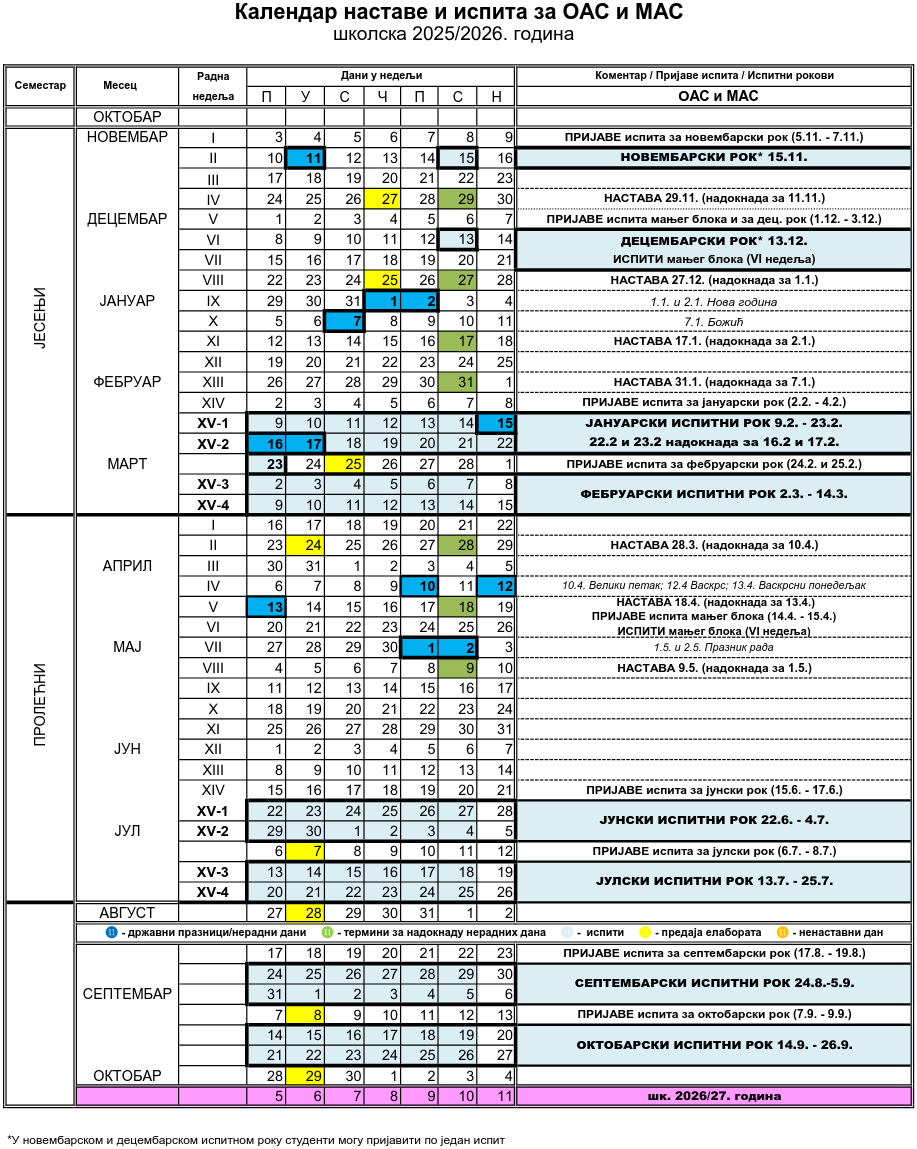 почетак » Студије на Машинском факултету » Календар наставе и испита школске 2025/2026. године